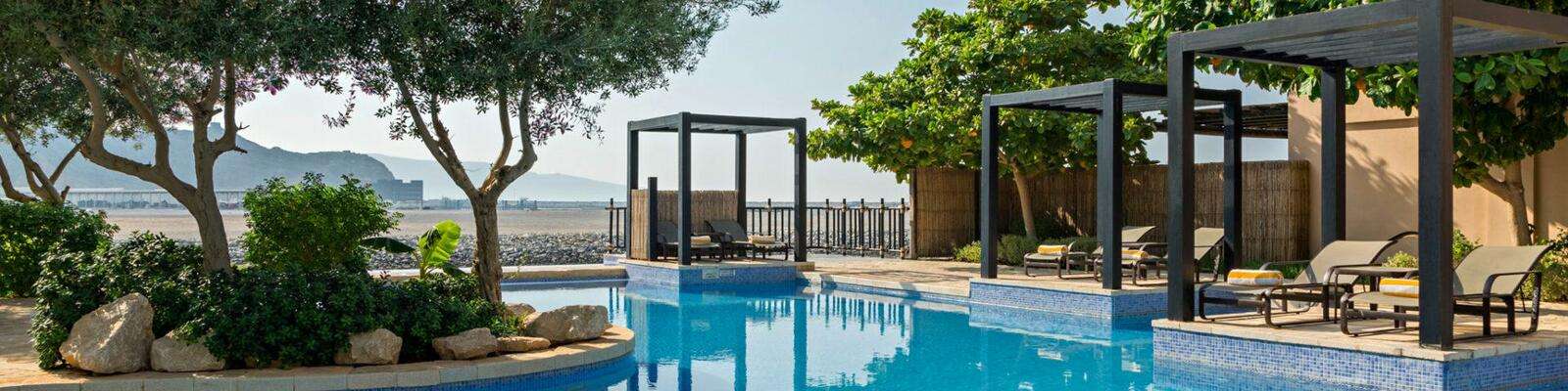 Our accommodation for the second half of 2025 and the whole of 2026 is Atana Musandam in Oman. This is a charming resort located in the heart of Khasab, offering stunning views of the Musandam fjords and the Arabian Sea. Designed in elegant Omani style, Atana Musandam sits on the picturesque peninsula and offers modern comforts whilst still remaining true to local heritage and a traditional aesthetic.