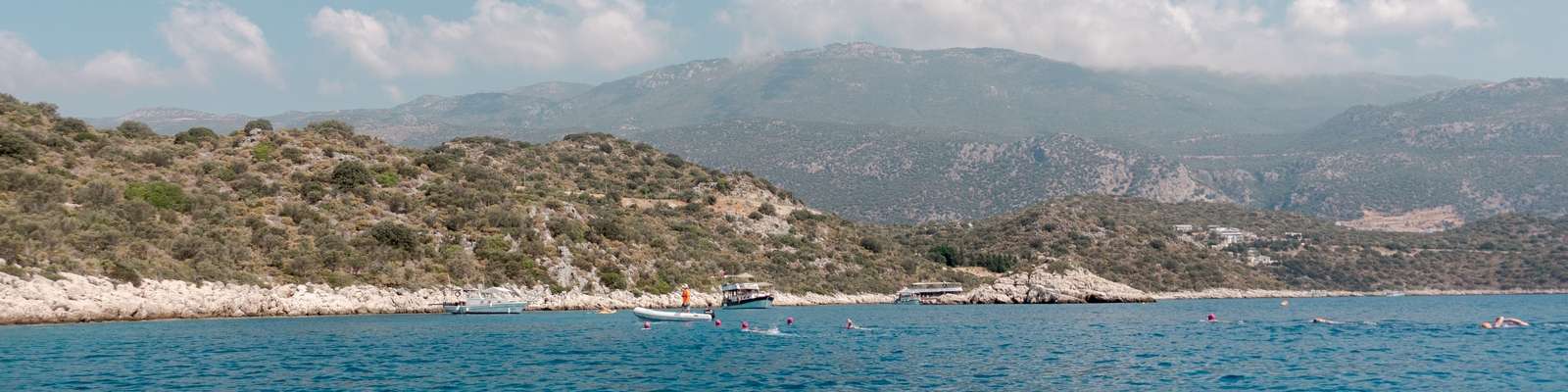 Based in the coastal town of Kaş, we spend the week exploring caves, tunnels, arches, and bays. Our swims will uncover the area’s most isolated beaches, scattered archipelagos and ancient sites, including the historic city of Aperlai, strewn in ruins both above and below water. There is so much to discover as we swim along a portion of the Lycian Way walking path, which stretches 760 kilometres from Fethiye to Antalya.