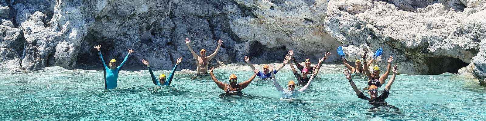 This trip is designed for swimmers who enjoy both coastal swims and crossings as well as exploring sea caves, tunnels and arches on our coastal swims. The pace of swimming is often slightly slower than usual due to the abundance of underwater vistas and caves and tunnels to explore.