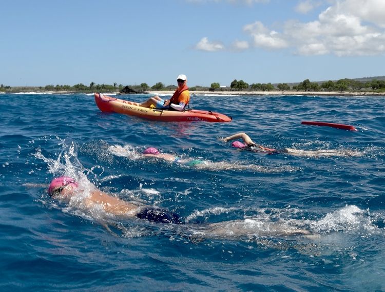Kayak escort with swimmers in Hawaii.
