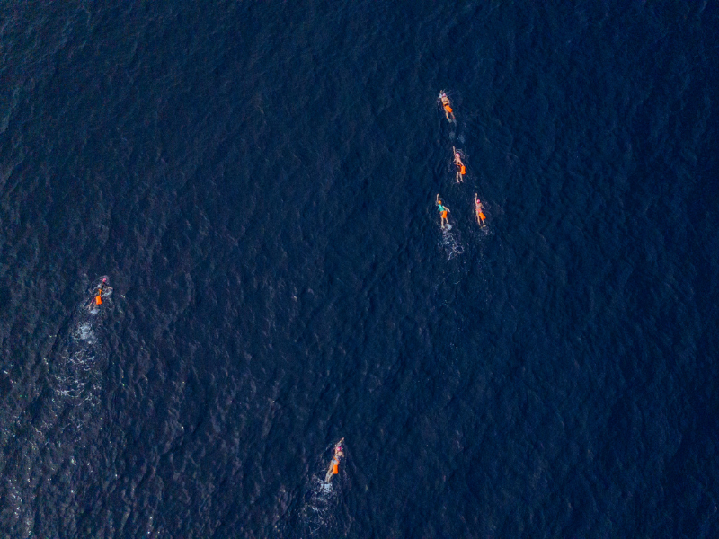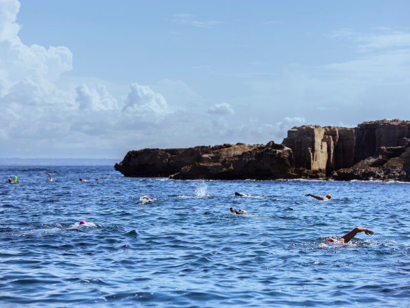 Swimmers should have a basic understanding of open water swimming and be capable of completing the average swim distance and average daily swim distance (over the course of two swims) prior to the start of the trip. The average swim distance is around 3km. The average daily swim distance is around 5km.