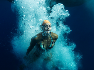 Swimmer surfaces in bubbles - photo by Scott Salt