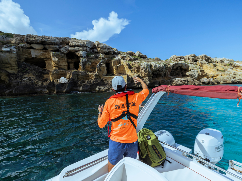 If conditions permit, there is a significant crossing between Favignana and Levanzo. This crossing can be challenging. You can sit out some of the swims or jump onto the support boats if you want to take a rest at any time.