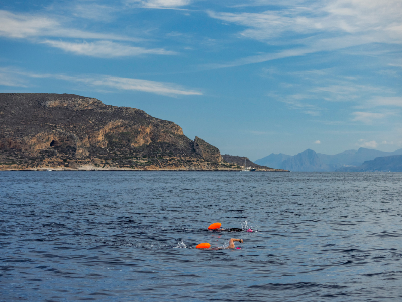 Dive into the warm Mediterranean Sea and experience an adventurous crossing from Favignana to Levanzo.