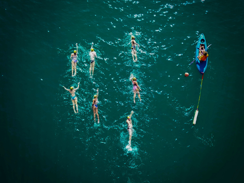 - Professional swim guides and full safety escort on all swims (swimmers only)