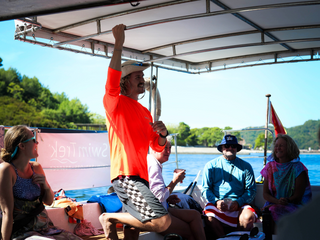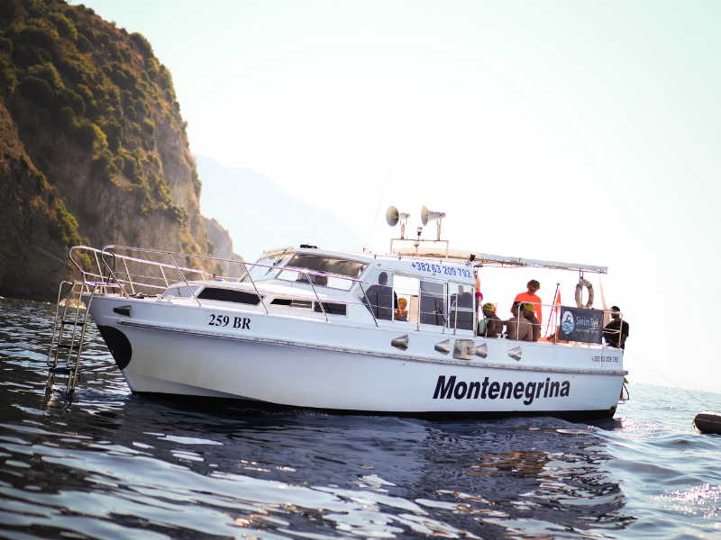 Boat and swimmers in Montenegro (Photos by Abe Noad)