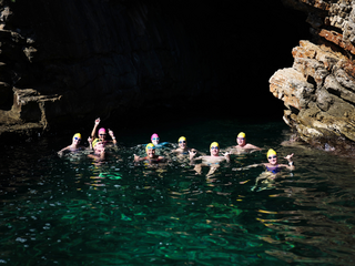Swimmers in sea cave in Montenegro (Photos by Abe Noad)
