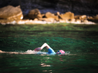 Swimmer beside rocky beach (Photos by Abe Noad)