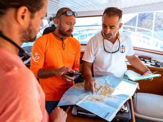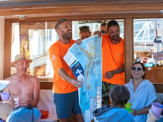 Guides with the swim map (Photos by Scott Salt)