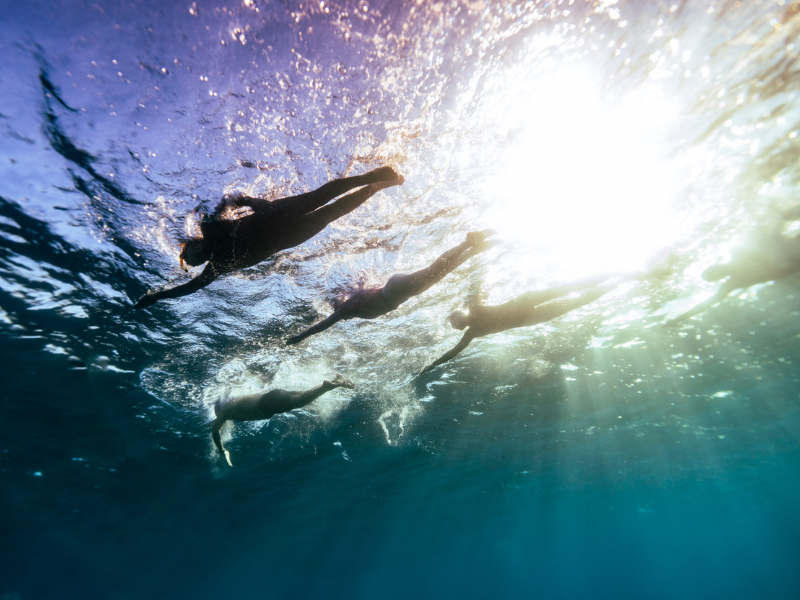 Swimmers from below with sunlight above (Photos by Scott Salt)