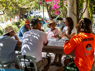 Guides and swimmers at lunch (Photos by Scott Salt)