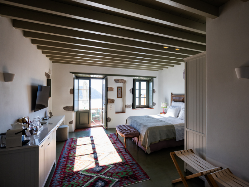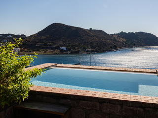 We stay at the Patmos Eye Boutique Hotel close to the bustling port of Skala. The hotel is an 18-minute walk from Melloi Beach and overlooks the water, below the foothills of Kasteli Hill. Whitewashed houses – like those in the Greek Cyclades – are dotted along the indented coastline. From Skala we can launch our adventures to find the tranquil bays and beaches of Patmos, as well as venturing out to the neighbouring islands of Lipsi and Arki.