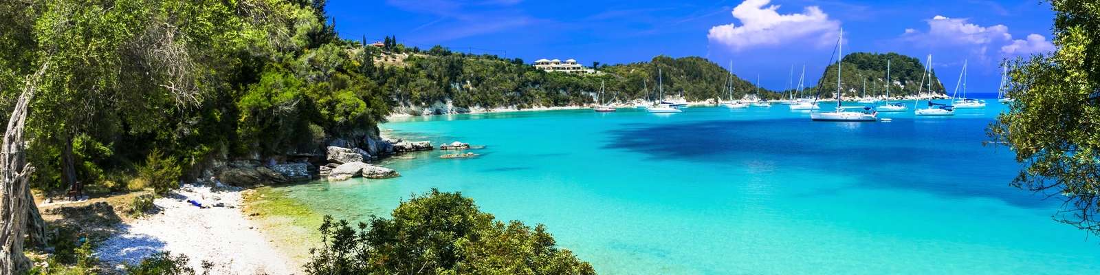 Not far from Corfu, the island of Paxos is the smallest of the main Ionian islands. Its wilder neighbour, Antipaxos, is spoilt for enviable beaches. Most notable of these are Vrika, Mesovrika, and Voutoumi – each could easily be mistaken for a Caribbean paradise, lapped by clear waters, and only a short boat ride from our hotel.