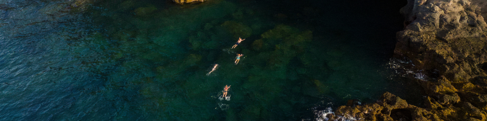 During this Short Escape swimming holiday we will weave around the island’s southern coastline. Here you will find yourself protected from prevailing winds, sheltered in warm bays and by cliff-edged stretches, which serve as ideal settings for our daily swims.