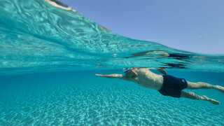 The afternoon swim takes us along the island's southeast coast - expect white sandy beaches, pristine waters, and gorgeous views of a coastline peppered with classic Mediterranean scrub.
