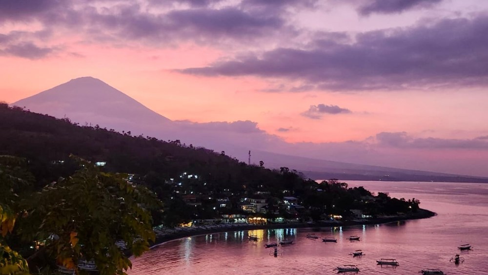 Relax in the evenings at the stunning Blue Earth Village with great company, delicious traditional cuisine and panoramic views over Jemeluk Bay and Mount Agung