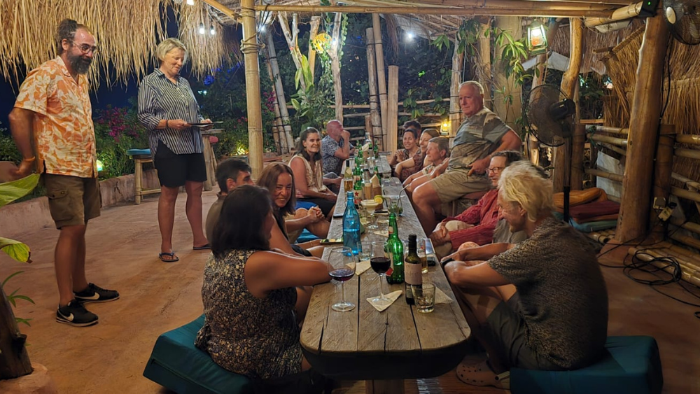 Swimmers at dinner in Bali