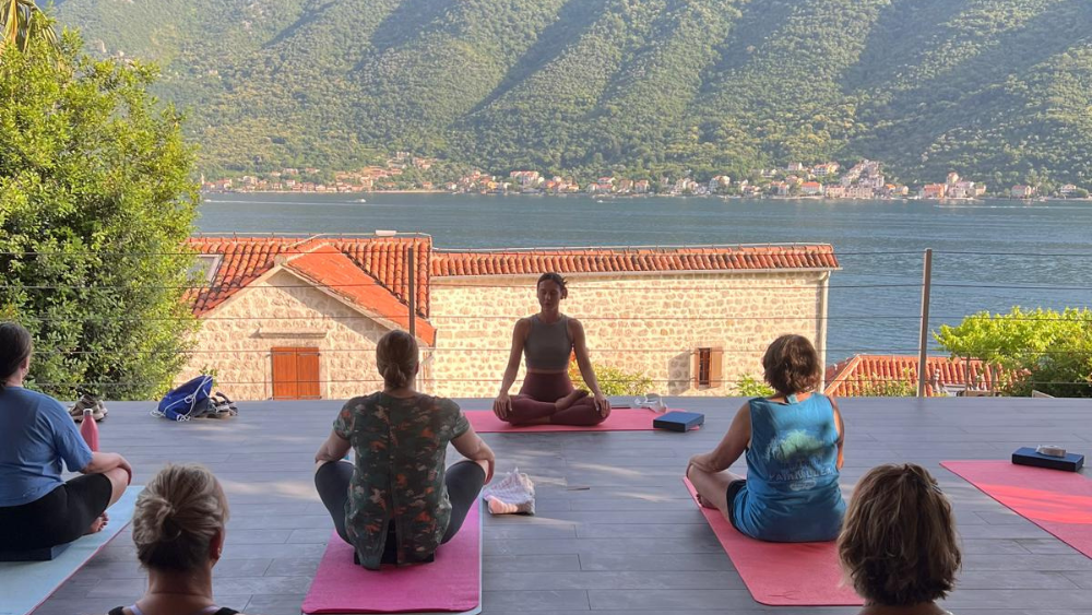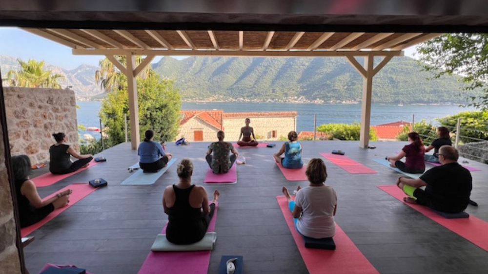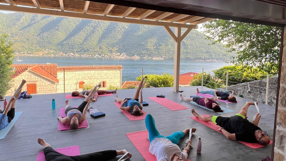 Group yoga session in Montenegro